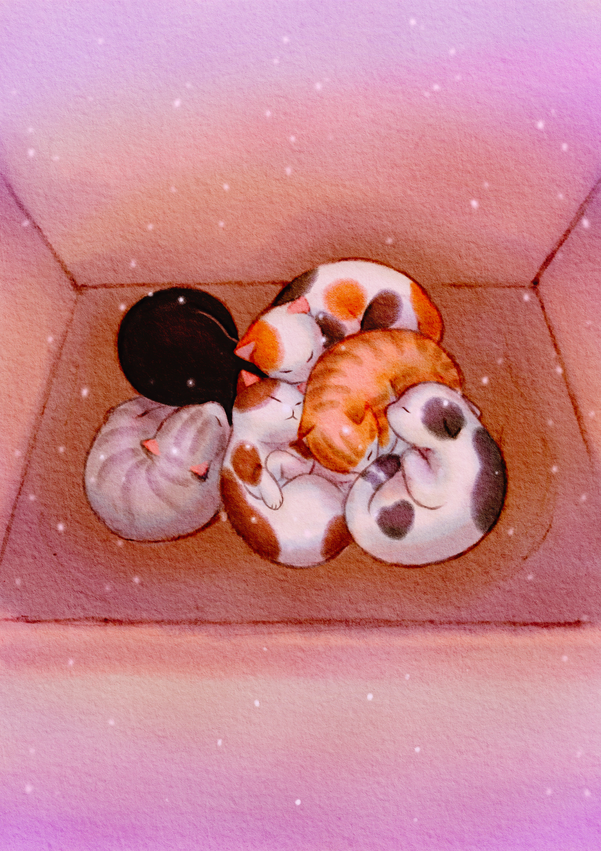 When I lifted the box, several kittens appeared. Then I turned to the sound of crying from the other side of the road. The cat standing under the tunnel slowly disappears.