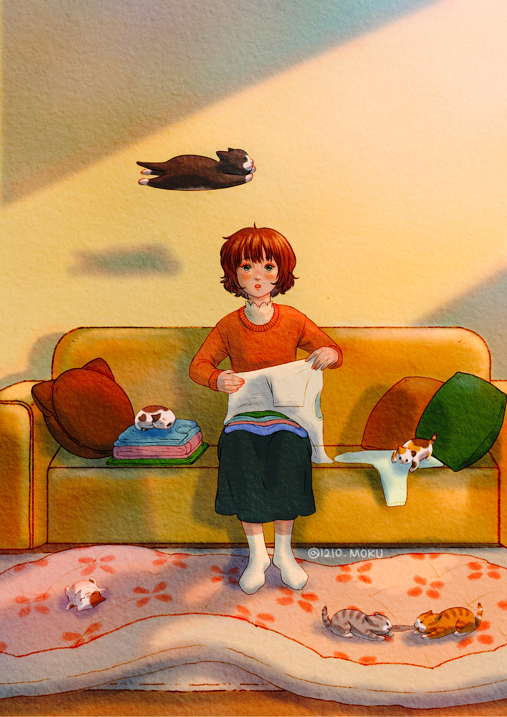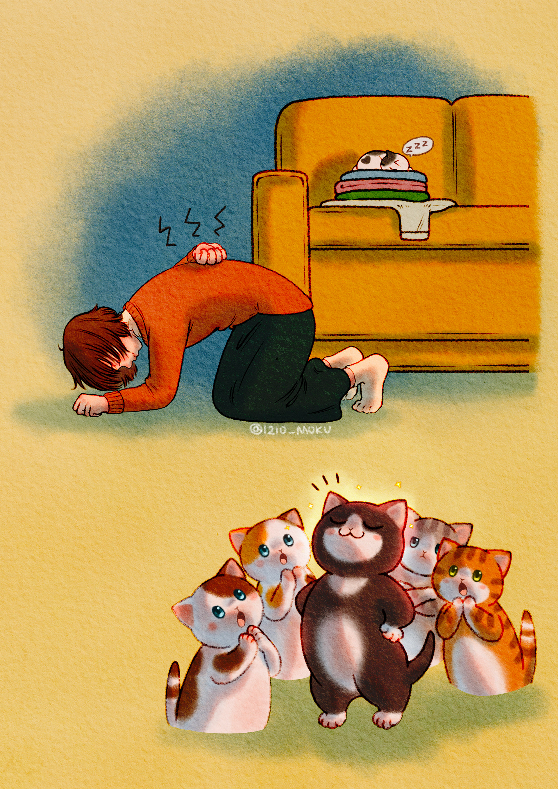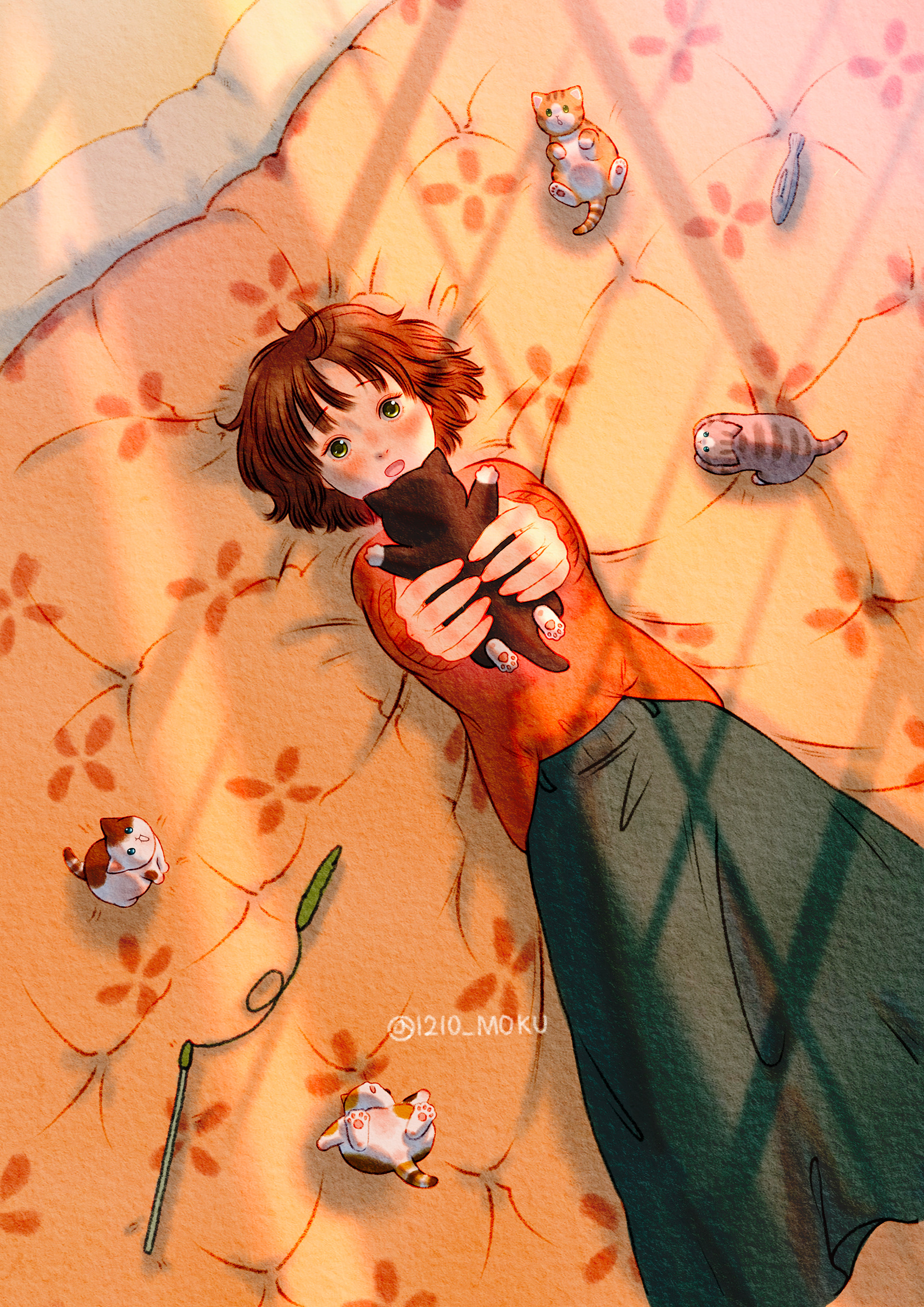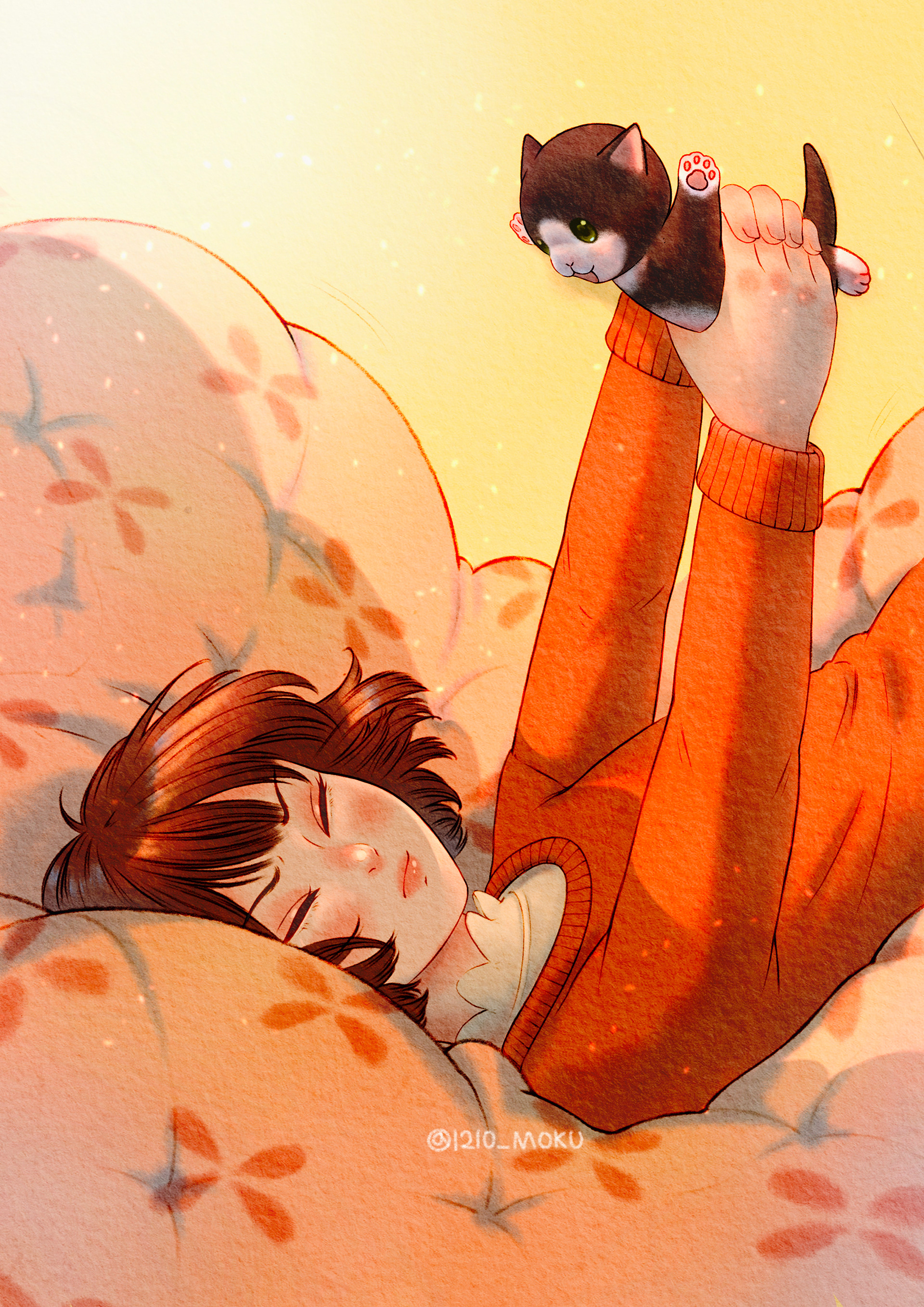 집사는 허리를 꿍! 했지만 그래도 폭신한 이불위에 착지했으니 괜찮을거에요!