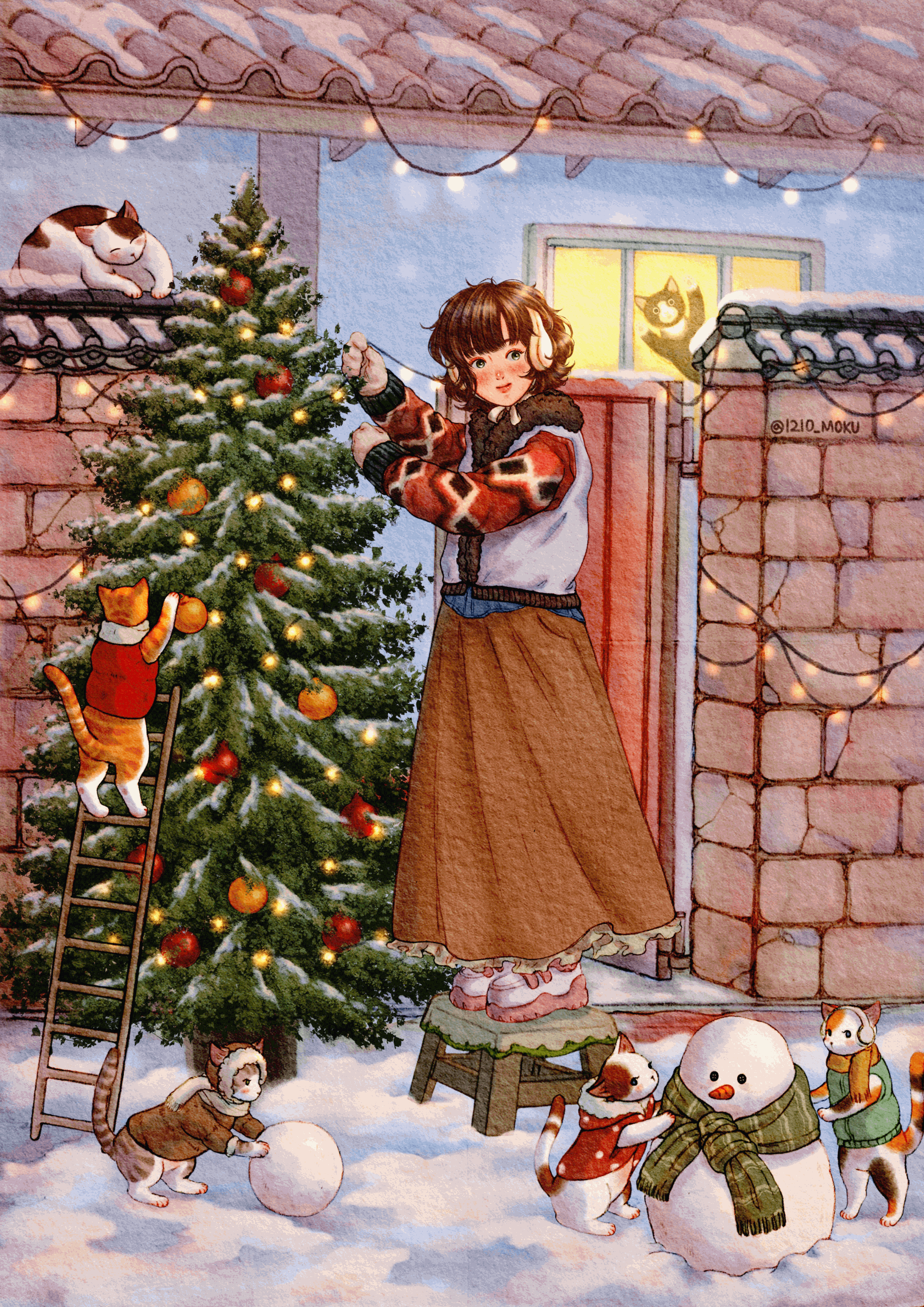 크리스마스 기념 일러스트 '트리 장식' 개인작, 2023